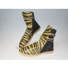 Kotníkové kozačky Out of Trend jsou výsledkem spolupráce společností Boty Jančařík a Bambas Art Original. Spojením dokonalého ševcovského řemesla s uměleckým designem vznikly výjimečné boty, které nelze přehlédnout. Celokožená bota je postavena na syntetické podešvi, která je pružná a vhodná do každého počasí. Svrchní části jsou zhotoveny z prémiových lícových hovězinových usní italské provenience v top kvalitě. Pohodlný nástup do boty je umožněn pevným zipem z vnitřní části a dva řemínky s přezkou na vnější straně slouží k přizpůsobení objemu boty nad kotníkovou částí nohy. Barvy výtvarné části a technologie její ochrany jsou šetrné k přírodě. Originální ruční malba na celé velké ploše nártu činí z této boty umělecký zážitek.
