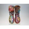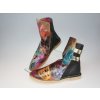 Kotníkové kozačky Out of Trend jsou výsledkem spolupráce společností Boty Jančařík a Bambas Art Original. Spojením dokonalého ševcovského řemesla s uměleckým designem vznikly výjimečné boty, které nelze přehlédnout. Celokožená bota je postavena na syntetické podešvi, která je pružná a vhodná do každého počasí. Svrchní části jsou zhotoveny z prémiových lícových hovězinových usní italské provenience v top kvalitě. Pohodlný nástup do boty je umožněn pevným zipem z vnitřní části a dva řemínky s přezkou na vnější straně slouží k přizpůsobení objemu boty nad kotníkovou částí nohy. Barvy výtvarné části a technologie její ochrany jsou šetrné k přírodě. Originální ruční malba na celé velké ploše nártu činí z této boty umělecký zážitek.