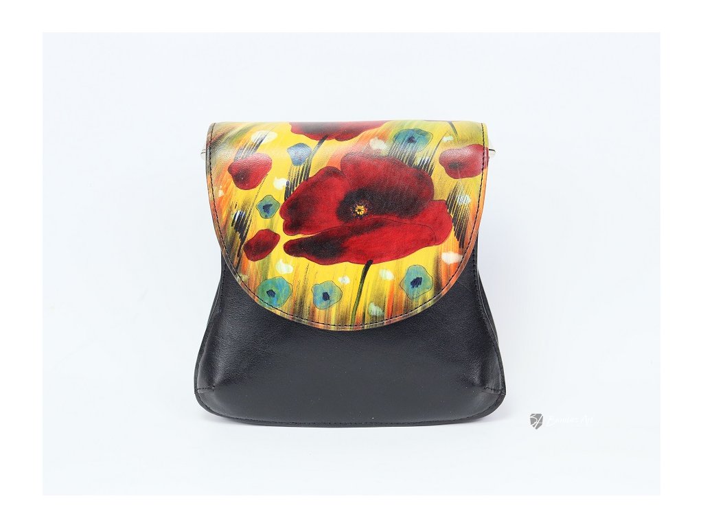 Kabelka model 320 patří mezi naše nejmenší kabelky, ale díky velké ploše pro malbu se stala výrazným výtvarným doplňkem. Volný vnitřní prostor, dlouhý nastavitelný řemínek - styl crossbody.
